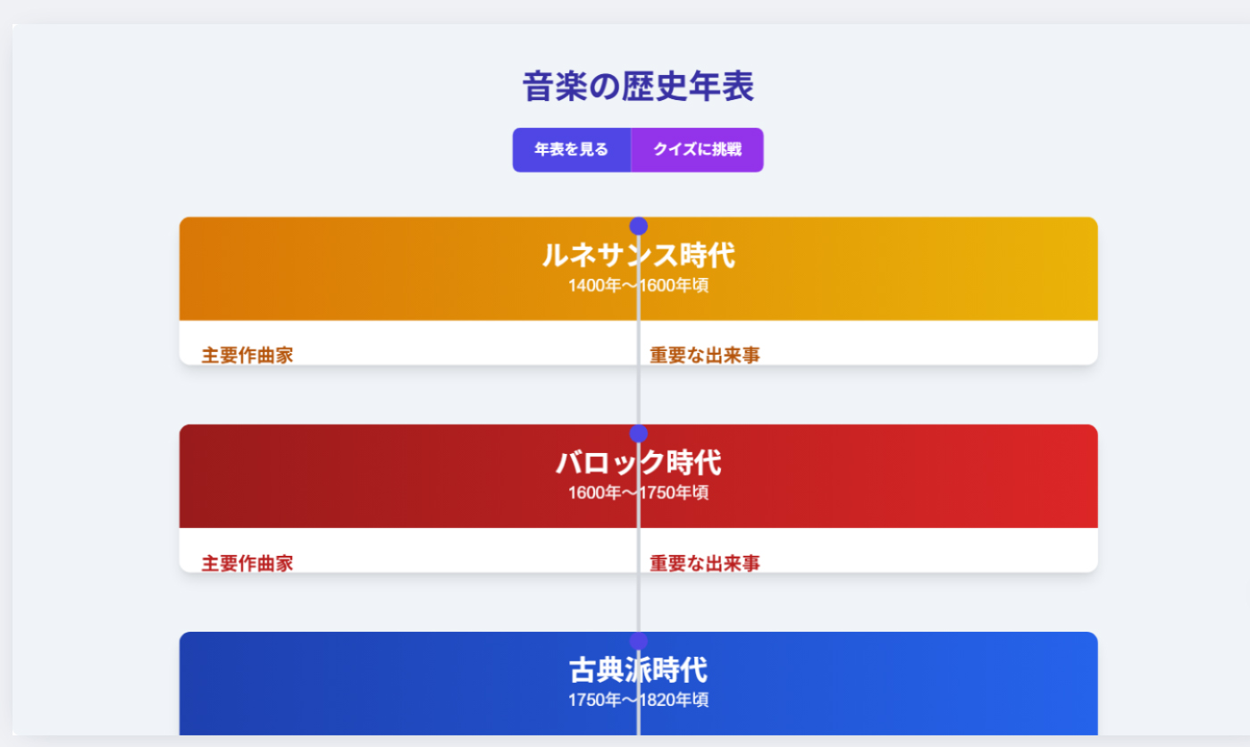 今回は音楽の歴史年表クイズ2025を話題のCanvaで作ってみました。