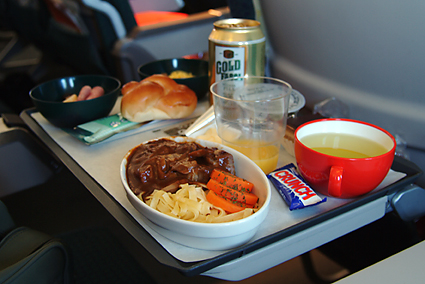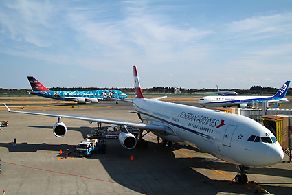 早朝5時20分に自宅を出る。近頃は「スカイゲートシャトル」という自宅から空港まで送迎してくれる乗合タクシーがある。今思えば帰りこそ予約をしておけば良かったと後悔するのだが、重いトランクを引きずる距離は短い方が楽に決まっている。航空機の座席は全てエコノミークラスで予約してあったが、伊丹-成田だけはビジネスクラスであった。どうせなら12時間の路線(成田-ウィーン)でこんなサービスがあれば嬉しいのだが。ウィーンの寒さは容易に想像ができ数時間後に味わうのだがシベリアの大地は筆者の想像を絶するものだろう。そんなことを考えながら機内で窓を眺めていた。日々の仕事や携帯電話での連絡から開放され、自分の意志のみで1日の予定が決められるなんて、最高の贅沢と言うべきだろう。