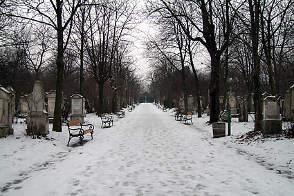 ザンクト・マルクス墓地は閑静な丘に位置する 中央通り中腹の左に「Mozart graub」の標識、左折すると見つけることが出来た。