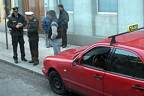 オペルのドライバーと市交通局の到着。 付近の交通整理が始まり25分が経過する。