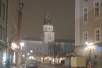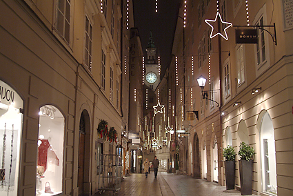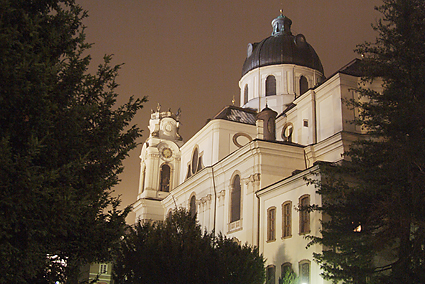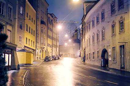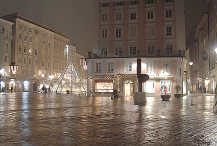どうして初めはいつも夜なのか?...仕方あるまい。今後の予定を見ても到着はいつも夜だ。駅前のホテルEUROPA(エウロパ)でのチェックインもそこそこにバスに乗車。バスはザルツァッハ川は渡ったものの全然違う方向に走る。早々に下車して徒歩で大聖堂を目指す。ウィーンとは趣が違うのがすぐに分かった。人影もまばらで、山に囲まれていることは真っ暗でも感じ取れた。今日はクリスマスイブだった。もっと人通りが多いと期待するのは日本人的だろうか?
