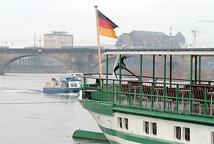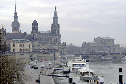 ツヴィンガー宮殿は1732年に完成したが、先の第2時世界大戦で破壊された。忠実な再現の作業を完了し、今では多くの美術館が設置されている。庶民にも解放したという広い中庭を進んだ。アウグスト1世といえばポーランド王にも即位したことで有名である。中央駅でプラハまでの切符を入手し、1時間の余裕を利用して再びエルベ川畔へ向かう。すっかり明るくなった川畔には対岸の建物も鮮明に望め、観光船が旅愁を豊かに醸し出していた。もう間違わずに中央駅に行けると自信たっぷりにエルベ川に別れを告げた。