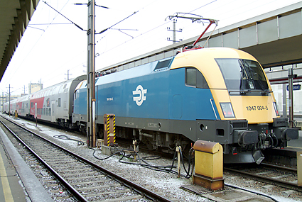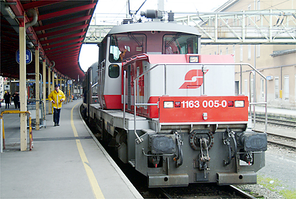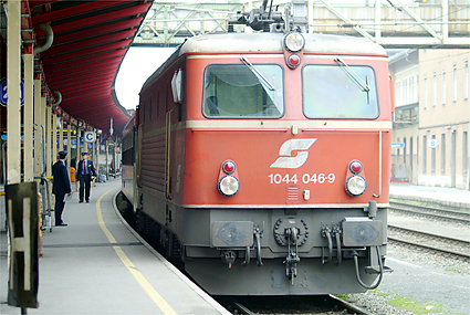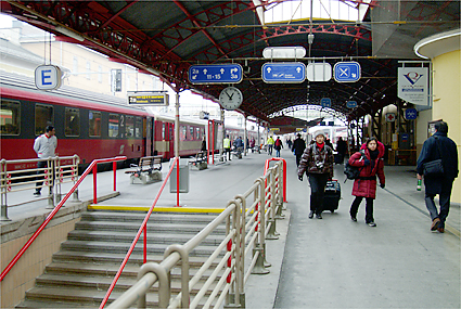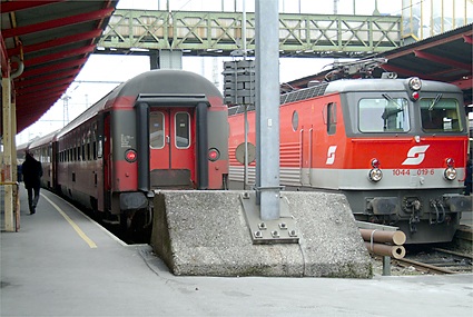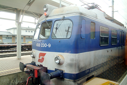 中央駅から列車に乗る前に軽く腹拵えをした。EUROなにがし....というファーストフード店だが店内はアメリカ資本とは少し違っていた。セルフサービスでカウンター越しに店員に注文する。やや愛想が悪い応対でスペシャルなにがし....というセットを注文する。薄いカレー味の黄色いポテトとシュニッッエルのようなポークの揚げ物・ハム・チーズ・キャベツの千切り・ホワイトソース、それらが焼いていないチーズブレッドに挟まれている。この昼食に何の感動も期待してはいけない。そして午後1時台の急行に乗車することができた。言い遅れたが、今回訪れた国々では市電やバスも在来鉄道でも切符なしでプラットホームまで行き、乗車することができる。我々は不慣れな異邦人、早めの切符購入を済ますに越したことはない。明るい時間帯なので車窓から見える列車を撮影すると決め込む。