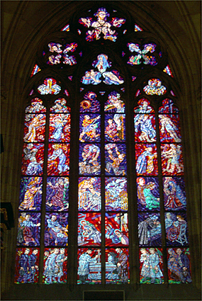 大聖堂の中に入ると更に厳かな雰囲気に満ちていて、両脇に並んだステンドグラスは見るものを立ち止らせる。筆者もシャッターを切り続けたが殆どが失敗に終わった。最も残念なのは正面中央の円形ステンドグラスの撮影が成功しなかったこと。マニュアルフォーカスで三脚を用いるべきだった。この大聖堂が建てられた930年にはロマネスク様式であったが、14世紀からゴシック様式に改修され、20世紀半ばにようやく完成した。ドレスデンにおいてもプラハにあっても、文化継承に時間を惜しむことをしない姿勢に感服したのだった。光こそ神がこの世に授けられた美の源であろう。そんなことを勝手に考え、自ら納得した時間であった。