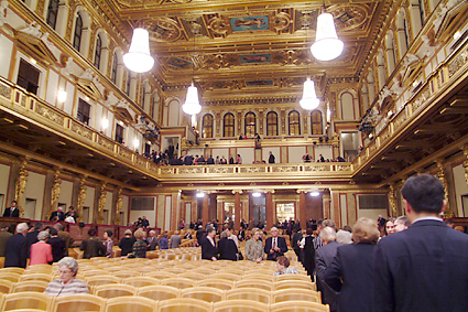いよいよコンサートが始まった。次々と演奏される軽やかなワルツやポルカ、初めて聴く曲も多かった。茶目っ気たっぷりのソプラノ歌手のブレス、指揮者の息遣いが聞こえてくる座席であった。何よりも豊かな音響はシューボックス型ホールからは想像できない素晴らしいものであった。次回は是非ここでブラームスやワーグナーの作品やベートーベン、モーツァルトのシンフォニーを鑑賞してみたいものだ。ジルベシターやニューイヤーでは聴くことの出来ない重厚なオーケストレーションは、どのように響くのか益々興味が沸き起こってくる。そんな意味では、やや満足とは言えない内容だが、軽妙な作品は、それ相応に美しく響くことは実感できた。コンサートが終わった後には日本語メニューを備えたレストラン、ミュラーバイスルで夕食をいただいてホテルに戻った。