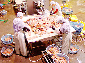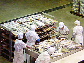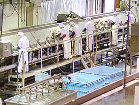 標津町では地域ハサップ(HACCP)に取り組み安全な食材を供給するシステムを確立している。忙しくない時には冷凍された商品の加工を行っている。消費者にとっては安心して食べられる体制が整っていることを実感した。