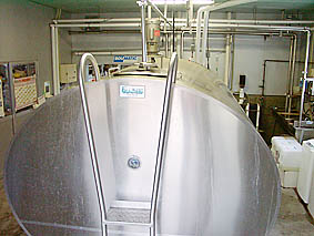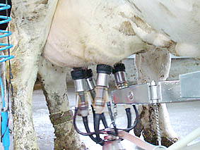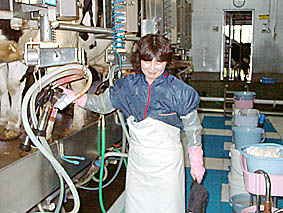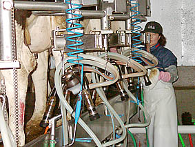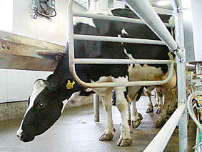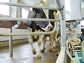 厳しい衛生管理のもと自動搾乳機によって牛乳が搾られる。作業行程で牛に手を触れることは全くない。搾乳室に入ることをいやがる牛もいたが、概ねは納得して作業に協力的だった。彼女達にとっては毎日の日課であり、極く自然な風景なのだろう。
