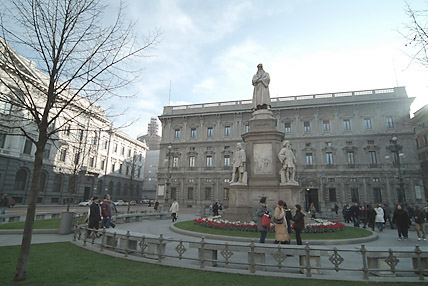 ガレリア ヴィットリオ エマヌエーレ2世(アーケード街)を通ってスカラ広場に抜ける。憧れのスカラ座が朝日に映えた。オペラ発祥の国イタリアで最も威厳に満ちたオペラハウス、スカラ座は1778年に完成した。オープニングにはイタリアの作曲家アントニオ・サリエーリ(1750-1825)が「気に入られたエウロペ」を上演。1812年にロッシーニの「試金石」を初演、マイヤベーア、ドニゼッティ、ベッリーニ、ヴェルディらの作品もスカラ座で初演されている。スカラ座は1943年には第2次世界大戦で破壊されたが1946年に細部まで全く当時のままに復元・再建された。世界一の芸術の殿堂としての歴史を感じさせる劇場に一度は足を踏み入れたいと思った。