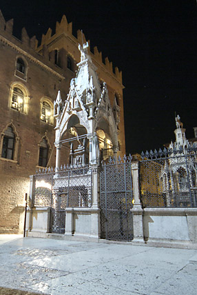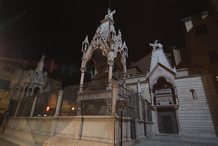 何となく迷いながらもサンタナスタシア教会まで到達した。しかしシニョーリ広場を通過してエルベ広場のランベルティの塔まで戻らなければジュリエットの家には行けないことが分かった。塔まで戻ろう。ジュリエットの家をようやく発見したが、もちろん閉まっている。鉄格子越しにシャッターを切る。続いてスカラ家の廟、カステルヴェッキオを回ってアレーナに向かう。