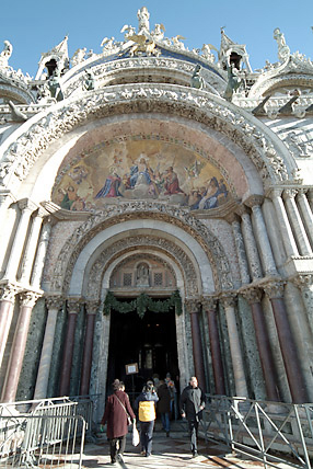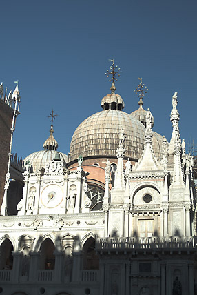 ドゥカーレ宮殿は栄光に輝いたヴェネツィア共和国の政庁として9世紀に築かれたが、幾度かの火災に見舞われ14世紀の半ばに着工され15世紀に完成したのが今の建物だ。ヴェネツィアゴシック様式の代表的建築でヴェネツィア共和国の総督の邸宅でもあった。淡いピンクと白の大理石を使った装飾が美しく「アドリア海の女王」と呼ばれている。中は大変広く、1時間半ぐらいの時間は必要だ。オーディオフォンを貸し出している。