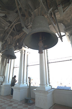9世紀に海の見張り台として建てられた鐘楼(カンパニーレ)はその後、何度も再建が重ねられるが、現在のものは1910年ごろ再建されたもの。これは1902年に突然鐘楼が崩れたため元通りに再建された。高さは96メートルあり、展望台までエレベーターで上ることが出来る。ヴェネツィアを一望してからの散策が賢明だ。 鐘楼は入場料 6ユーロで毎日9時から17時まで登れる
