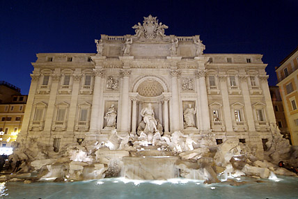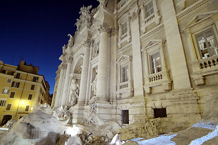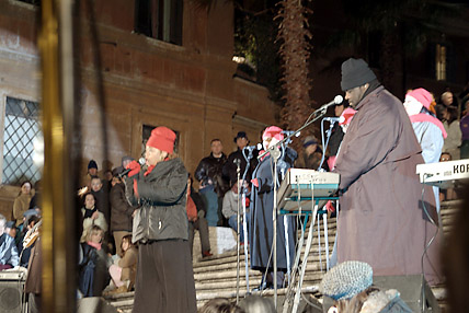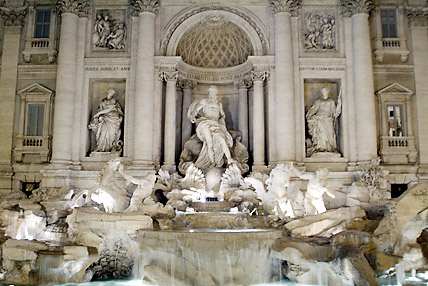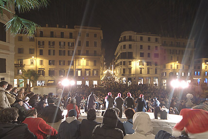 バチカンを出て次に訪れたのはクイリナーレ宮殿に程近いトレビの泉である。トレビの泉は教皇クレメンティウス12世の命によって、1762年に完成した。泉のデザインは建築家ニコラ・サルヴィ。泉の後ろの宮殿をデザインに取り込み、中央には二人のトリトーネが引く馬と海神ネプチューンの彫像がたたずむダイナミックな構造になっている。この泉には、右手で左肩越しにコインを投げ入れると再びローマを訪れることができるという伝説がある。続いて徒歩でスペイン広場に移動した。スペイン大使館があることから名づけられ、正面のスペイン階段は映画「ローマの休日」でオードリー・ヘップバーンがアイスクリームを食べた場所だ。クリスマスのゴスペルコンサートが繰り広げられていた。エウル地区のホテルにバスで移動、明日に備えて22時に早々と就寝した。