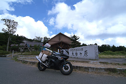大台ヶ原 - 大普賢岳 1/6 2004年8月20日、最後の夏休み休暇を利用して大台ヶ原と大普賢岳を目指してソロツーリングに出かけた。今回の目的は日出岳(1695m)と大普賢岳(1780m)への登山である。自宅を8時00分に出発、まずは国道169号線沿いの吉野で買い出しだ。しばし休憩の後、国道を南下し川上村を経由して山深い上北山村から大台ヶ原ドライブウェイに入った。12時には大台ヶ原に至った。日本一の豪雨地点であることを考えれば幸運極まりない天候である。