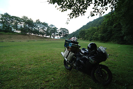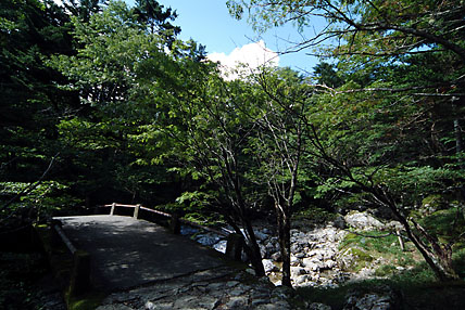 大台ヶ原 - 大普賢岳 4/6 日出岳から約40分、正木ヶ原に到着した。ここから下り、尾鷲辻を折れて駐車場まで戻る。尾鷲辻までは急な下りだが、その後は標高差のない道だ。いくつもの小さな沢を横切りながら30分ほどで戻ることができた。再びバイクで169号線まで下りる。新伯母峯トンネルを潜ってすぐに右折、10分ほど上って今日の野営地である和佐又キャンプ場に到着した。金曜だがキャンプ場は筆者が一人占めだ。電灯の無いトイレと炊事場を酷評するWebページを見たことがあるが、最近の整備され尽くしたキャンプ場には求めることができない味わいがここにはある。