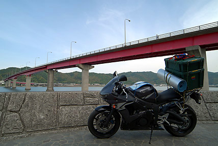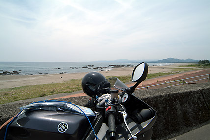 宇佐大橋を渡ると右に浦ノ内湾、左に太平洋を望む横浪黒潮ラインに入る。切り立った断崖には海と空の青に対して春の新緑が眩しいコントラストを浮き立たせていた。程なく国道56号線に戻り、しばらくは太平洋と別れて峠道になる。七子峠を越えると再び太平洋に出た。 土佐白浜海岸には浜昼顔がびっしりと一面に咲き誇っている。昼下がりの強い光線ではあったが気温は25度以下であろう。元気な花を真上に向けて人知れず開いている様が一際力強く感じた。四万十川の河口が開く街、中村市も目の前だ。