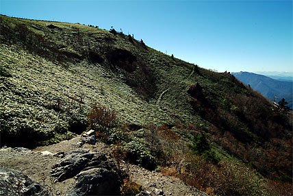 頂上付近はクマザサが一面に生えている
