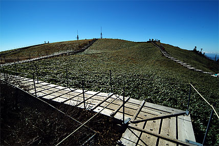 整備された木道で頂上地点(1955m)に達した←前へ もどる↑ 次へ→