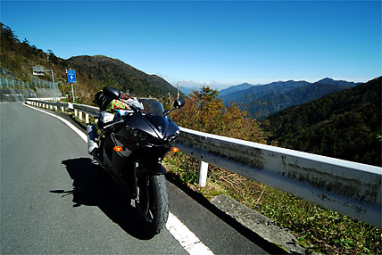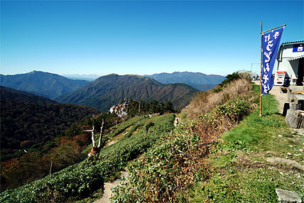 10月16日(土)3時30分起床、4時15分には自宅を出発した。6時50分に和歌山港フェリー乗り場に到着、7時20分の徳島行き(南海フェリー)に乗船した。1800円(人)+1500円(750cc以下のバイク)=3300円。徳島港には9時10分に到着、国道438号線で木屋平村に向かう。途中で国道は崩落のため通行止、迂回しながら12時には木屋平村と東祖谷山村の峠にあるリフト乗り場「見の越」駅に着いた。