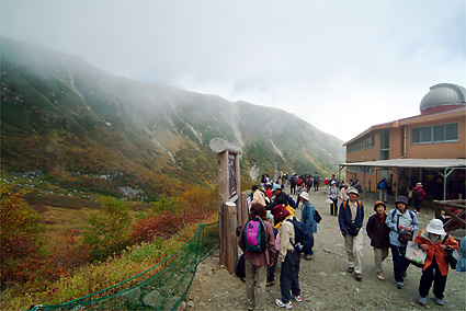 '05初秋の信州駒ケ岳-1/4 先日は我ながら不覚にも「愛地球博」で人混みに翻弄され、全く意気消沈してしまった。2005年の9/28その心身を癒やし切れないままに過ごしていた日々を絶ち切ろうと考え、発作的に単身バスツアーに参加した。前日になって思い立ったので旅行代理店の事務所まで直接バイクを走らせ、何とか席を確保。当日の天気は曇りから晴れとのことで、ひとまず意気揚々だ。
