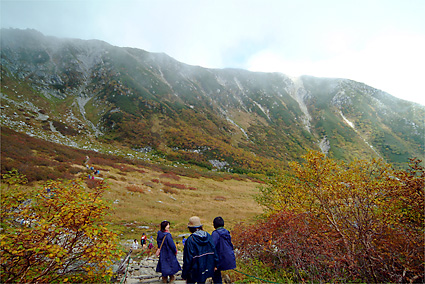 12時15分に千畳敷カール(カール=氷河期の氷で削られたお椀型の地形)の散策開始
