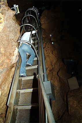 京都の鍾乳洞探検-3 ―瑞穂町・質志鍾乳洞― 外の気温は30度くらいと感じていたが 洞内は体感20度ってところ しばらく下りていくと絶叫スポット それでも真下に下りていく まだまだ下りて5分くらいで最低地点に到着 さあ地上へ ←前へ プライベートルームへ↑ 次へ→