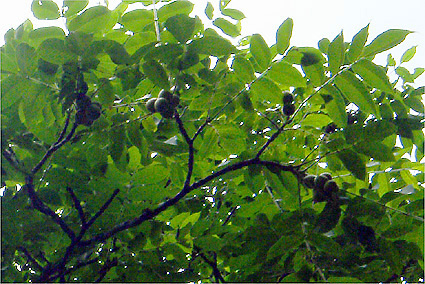 外に出ると胡桃(くるみ)の木にポツポツと雨が...