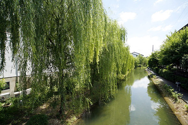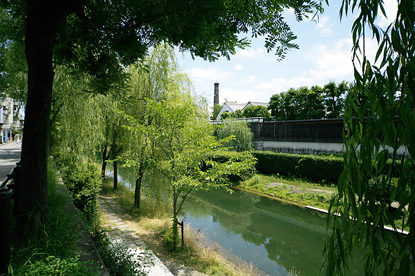 宇治川の派流、濠川の散策路におりてみる 江戸時代から「伏水(ふしみ)」と呼ばれ豊かな地下水にも恵まれた地で「黄桜」「月桂冠」「松竹梅」「桃の滴」など銘酒の里でもある。筆者の父も酒蔵勤めであった。