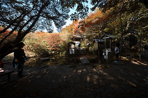 山頂では多くの観光客が高原の秋を楽しんでいる。さすがに聞こえてくる言葉は中部地方のものばかり。滋賀県側からのアクセスが遮断されている以上、当然のことかもしれない。一等三角点で饅頭を二つほおばり、13時30分に下山とする。滑落しそうな場面を何度も経て武平峠に下りた。急斜面に終始するルートだったことを改めて実感した。 長者池で戯れる孫と祖母 やっと到着 しみじみ眺めながら腹拵え 三重県側には雨量観測所とロープウェイ駅 秋を堪能しながら 御獄大権現を訪ねる ←前へ ↑もどる 次へ→