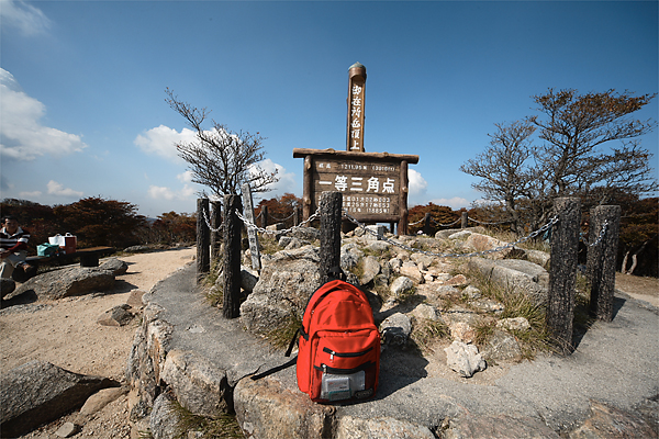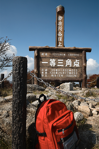 山頂では多くの観光客が高原の秋を楽しんでいる。さすがに聞こえてくる言葉は中部地方のものばかり。滋賀県側からのアクセスが遮断されている以上、当然のことかもしれない。一等三角点で饅頭を二つほおばり、13時30分に下山とする。滑落しそうな場面を何度も経て武平峠に下りた。急斜面に終始するルートだったことを改めて実感した。