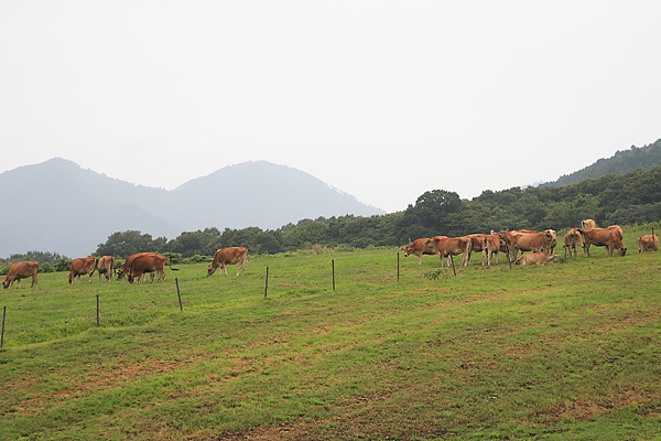 ―秋霖を行く― 2008年9月15日、初秋の蒜山に出かけた。道の駅 蒜山高原 を出発して蒜山酪農農業協同組合を経由し、ヒルゼン高原センター までを散策。約8kmの高原路を楽しむことができた。あいにくの秋雨、どこまでも広がる緑の牧草地を吹き抜ける涼しい風に助けられながらの3時間であった。