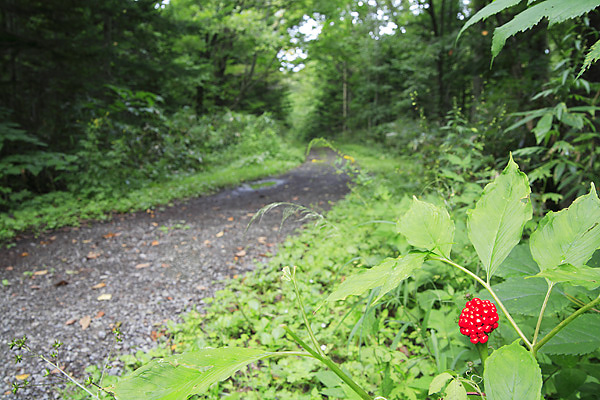 足を進めれば、どんどん文明から遠のいていく気分だ。道端には人知れず咲く花が過ぎ行く夏を惜しんでいる。一際明るい場所が見えてきた。分岐点だ。 森には珍しい赤色 黄色い花 これは知っている....名前が出てこない 猛毒のトリカブト ピンクの花 きのこ 殆どがトドマツ林だ ←前へ ↑もどる 次へ→