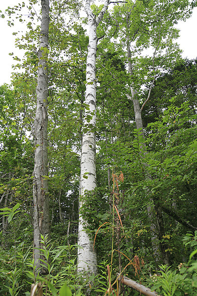 分岐点にはベンチがあった。8月末といっても気温は25度、まだまだ暑い盛りだ。歩き疲れて座り込む、そしていつしか横になっていた。何とも気持ちが透き通っていく極上の感触。 左に分岐した道が見える 白樺も時折見える ベンチ発見 近くにあった切り株 寝そべってみたら 視界はこんな感じ ←前へ ↑もどる 次へ→