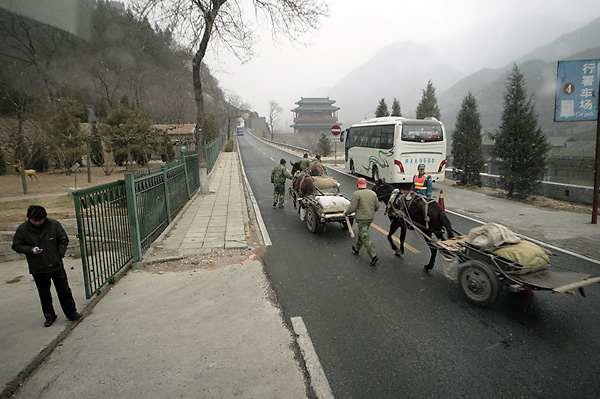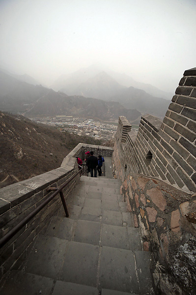 日本人には男坂と呼ばれる南側を登り始める。 1時間30分の滞在時間だ。美しい眺望で有名な南七楼までは行けまい。何とか可能なところまで上ってみる。やはり時間が短すぎたか、南五楼で引き返す。雪が舞い始め体感温度は摂氏0度くらいだ。肩をすくめながらバスに乗り込み、昼食会場に向かった。