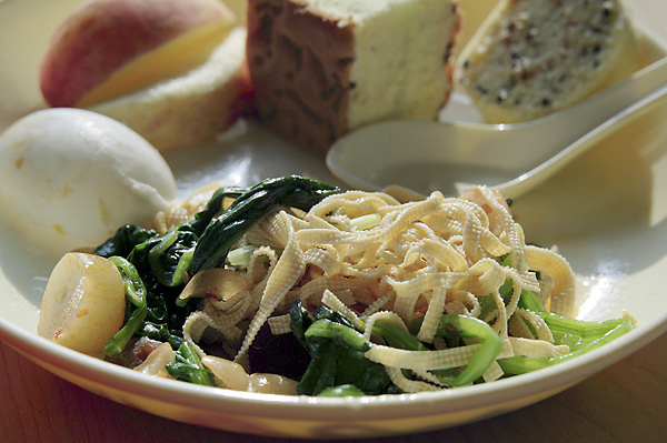 最終日の朝食で見たことも無いパスタのような食材