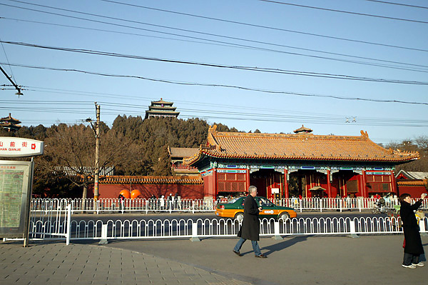 燕山大酒店にチェックイン後、昼食はホテル前のレストラン。広東料理だそうな、薄味で結構な具合だ。ナマコはゼリー状の柔らかさ、チャーハンは味が薄すぎて何だか分からない感じ。それでも割り勘30元はお得な昼食となった。旧市街に向けて出発、故宮博物院を目指す。天安門広場の反対側(北側)にある地安門から入場する。