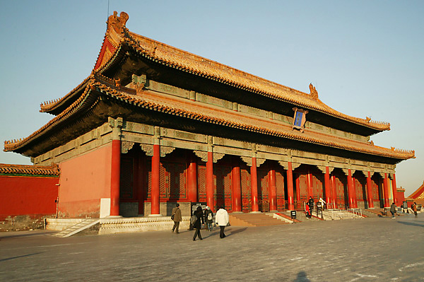 夕陽に映える故宮博物院を南に向かって歩く。南北の長さ961m、東西の幅753m、面積は 725,000平方キロメートル あり、世界最大の宮殿の遺構である。紫禁城はプッチーニの歌劇トゥーランドットや映画ラストエンペラーの舞台でもあり、感慨深いロケーションだ。
