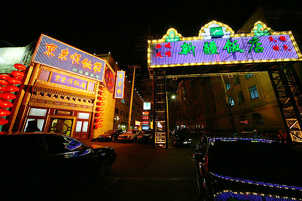 天安門広場をあとに、夕食のためレストランに向かう。新彊ウイグル自治区の物産を進行させるための地区に到着。羊肉と牛肉のしゃぶしゃぶ料理をいただく。豪快な炭火の鍋にどんどん肉が入れられ、食べる速度が追い付かない。満腹のうちにホテルに帰った。