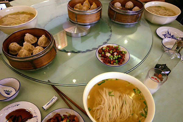 北京友誼商店を出て最後の食事、麦当労の前を通過して南方料理の店に入る。「呉越なんとか」という名前の店、包子や麺をいただいた。