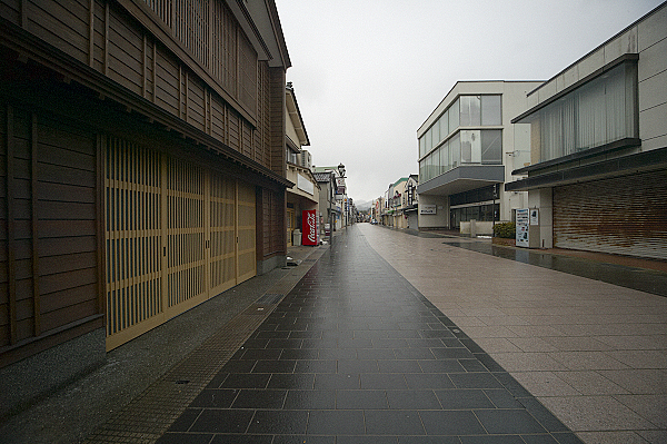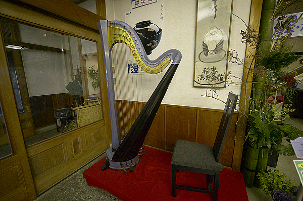 稲忠漆芸会館で漆塗の青山ハープを発見。音や響きにはどんな影響があるのだろうか。弦が切れていて弾けそうもない状態であった。続いて千年以上も前から続いている朝市...と思ったら三が日はお休みだ。閑散とした朝市通りでレトロなポンプを見つけるも、使えない。使えなくても残してほしい風景である。
