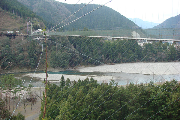 今年の異常気象でキャベツが300円と高騰、昨夜も氷点下近くまで冷え込んだ。 翌朝は朝食を済ませて撤収、つり橋へと散策に向かった。閑散期のため往復渡りができる。西側からスタートし国道側へ到達、引き返して絶景を堪能した。 この河川敷もゴールデンウイークには人で埋まるのだろう。