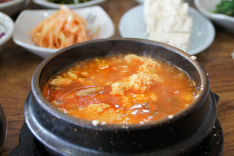 外国といった感覚は、もはや出入国の時だけの事かもしれない。田舎の名勝旧跡めぐりとご当地料理の旅なのだ。中国の上海や北京よりも身近な土地柄で、ゆっくりくつろげる感じ。今度は大阪南港からフェリーで釜山を訪れたいと思った。(主な撮影機材 Canon EOS D60) 仏国寺に向かう途中の豆腐料理店 いかにも韓国料理 あつあつの激辛豆腐鍋 慶州の世界遺産 仏国寺 願いをこめて石を積む 最後にロッテホテル前の風景 ←前へ ↑もどる