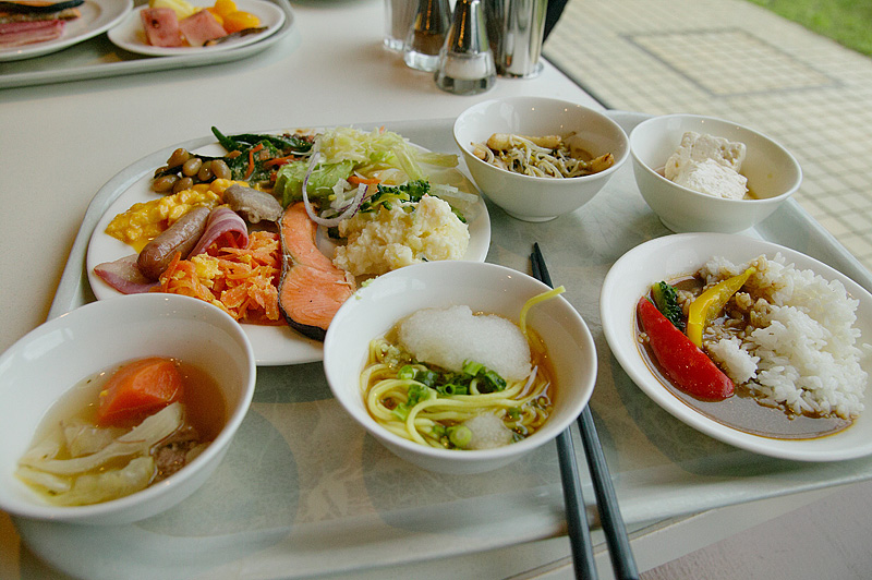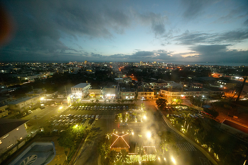ホテル日航八重山は快適であることに疑いなかった。ただ、島らしさを感じるのは食事くらいで、特段の郷土色を感じるためには相応の努力が必要だ。12階からの眺望は海が近い街全体の様子が見て取れた。夕食はホテル常設レストラン「畑人(はるさー)」の定番コース料理にする。外出の元気は残っていないのだ。野菜たっぷりの焼き肉だった。島の農園をイメージしたメニューが並ぶ。