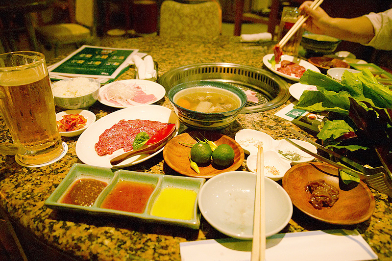 「畑人(はるさー)」の定番コース料理は野菜たっぷりの焼き肉だ