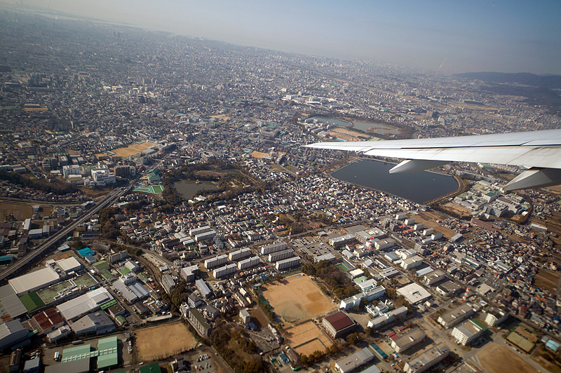大阪の上空を飛び立つ