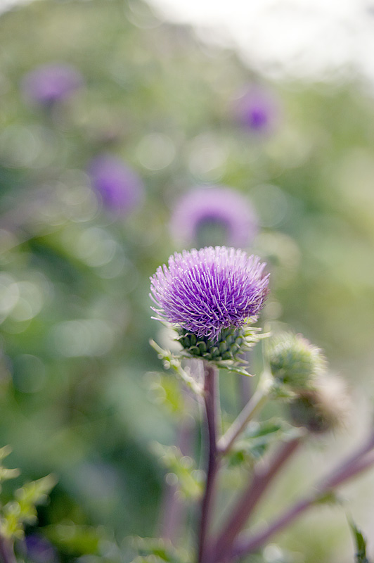 砂浜にはアザミが群生