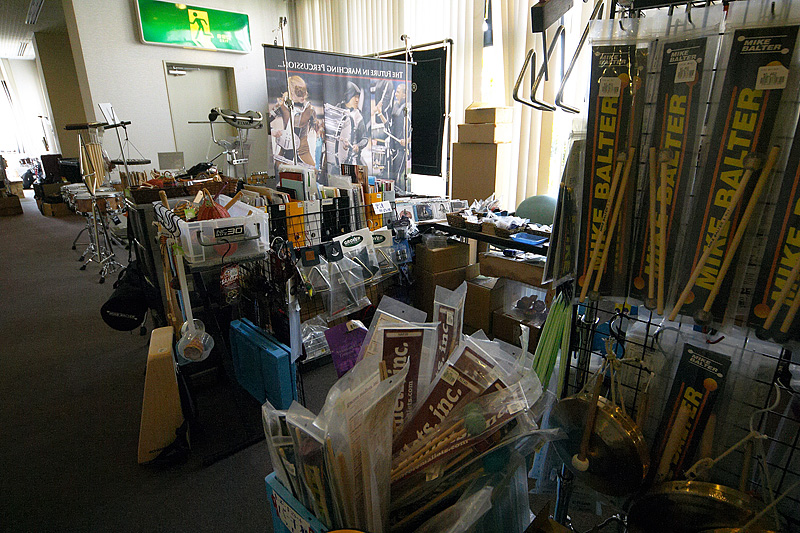 パーカッションフェスティバル2013の会場である「大阪フィルハーモニー会館」はメーカーや輸入元のブースで埋め尽くされている。後日取り寄せができても、音を確認してターゲットを絞れるのが最大のメリットだろう。もちろん価格もスペシャル・プライスだ。