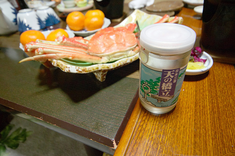 夕食・朝食ともに十分なクオリティで満足(里会席プラン8,800円)。今回は松葉ガニは2匹で追加7,000円。温泉は露天風呂も楽しむことが出来た上、レンタサイクル付きだ。翌日は早朝からサイクリング、その後は傘松公園で定番の股のぞきを楽しむ。