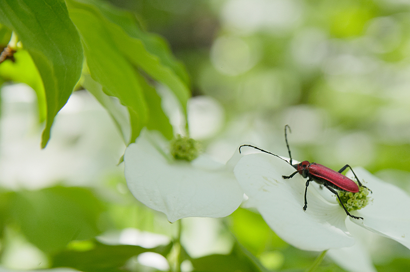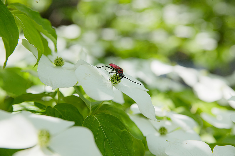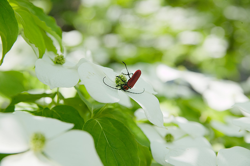 深草西出山町2014-2/4 ハナミズキの頃 弁当を食して昼下がりになってもハナミズキの袂を離れずに見ていると、お客さんが現れた。緑と白の色調に鮮やかな赤が加わったことで気を良くした筆者は、すでに満腹なのだ。お客さんの食事を眺めているとしよう。 昼からは気温30度 木漏れ日が涼しい お客さん登場 独り占めの状態だ 何の警戒も必要ない 飽きたら次の花へ 移動するのだ ←前へ もどる↑ 次へ→