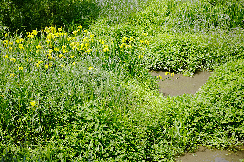 調整池の菖蒲も眩しい