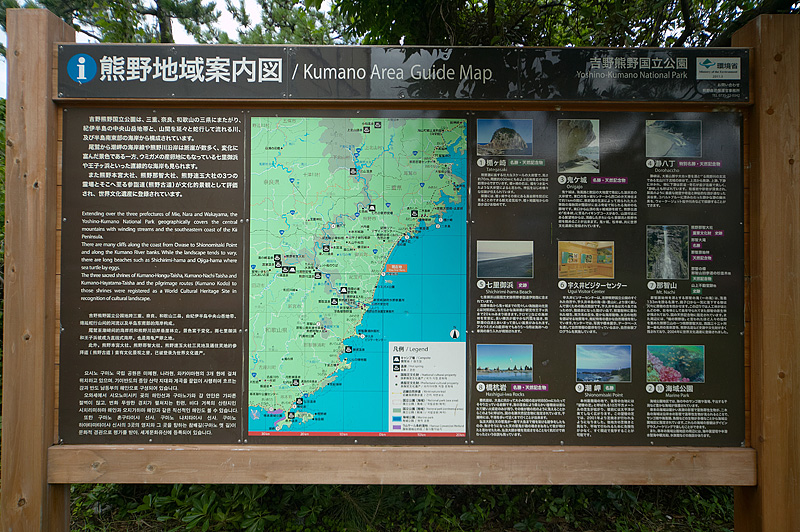 本州最南端と紀州満喫ツーリング熊野市は17日に予定されている花火大会の準備で忙しそうであった。国道42号線(熊野街道)を新宮市に向かう。途中の海岸で七里御浜に下りてみた。見渡すばかりの砂浜は約22Km続く日本で一番長い砂礫海岸で、熊野灘の荒波に磨かれた小石が敷き詰められている。また、アカウミガメの上陸地としても知られている。いやな予感が的中し、串本町のスーパーで雨が降ってきた。やはり今回も雨の夜となった。何とか湿気と戦いながら夜の雨をやりすごし、朝日に感謝しながらテントや寝具を乾かす。